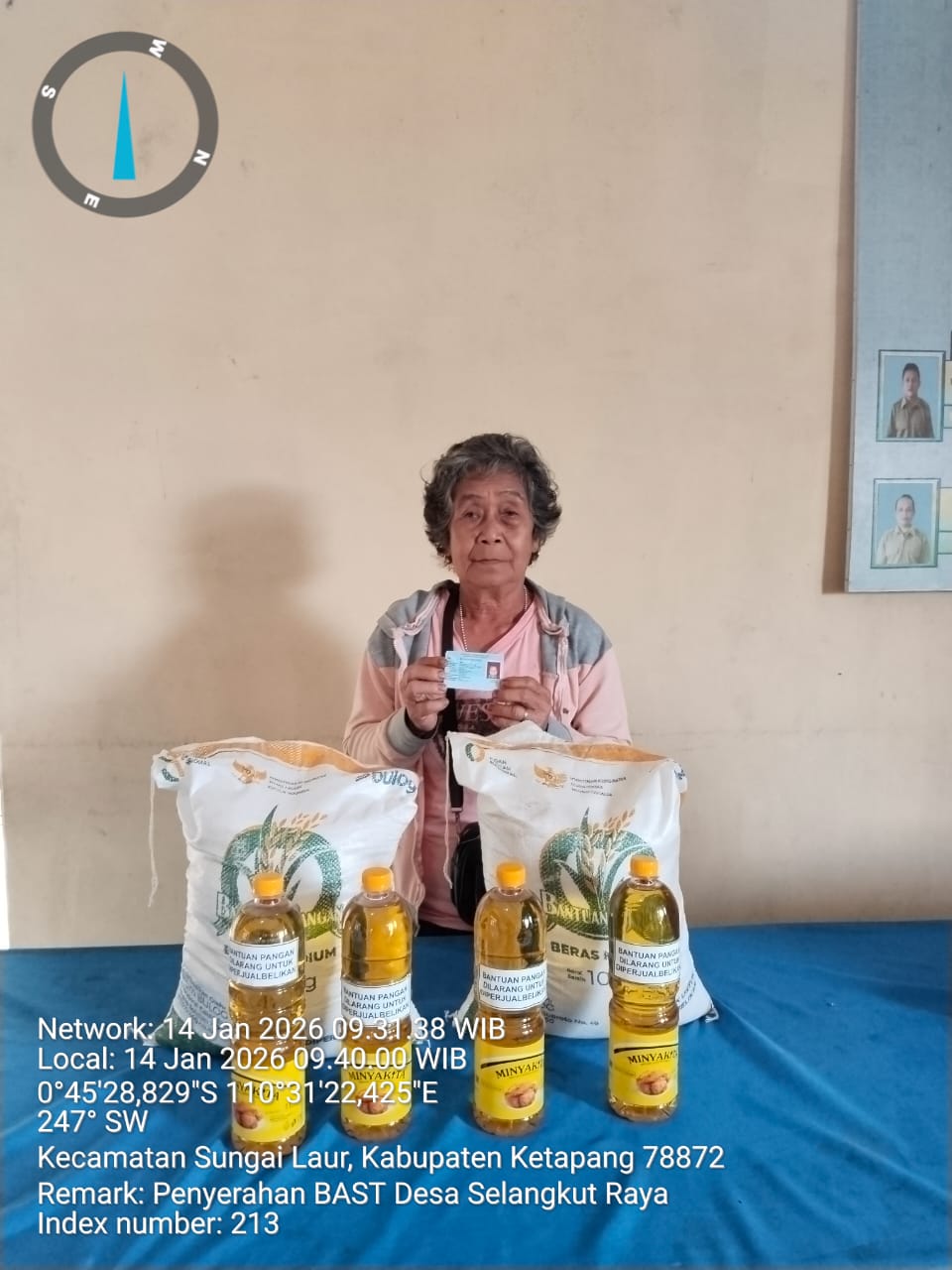 Aula Kantor Desa Selangkut Raya, Kecamatan Sungai Laur, Kabupaten Ketapang menjadi saksi penyaluran Bantuan Pangan (BAST) pengganti pada tanggal 14 Januari 2026. Program ini ditujukan untuk membantu warga yang membutuhkan di tengah kondisi ekonomi yang masih menantang. Proses penyaluran berjalan tertib dan lancar, diawali dengan pendataan penerima manfaat oleh aparat desa setempat. Penerima bantuan pangan pengganti (PBP) satu per satu dipanggil untuk menerima haknya. Setiap PBP menerima 20 kg beras dan 4 liter minyak goreng dengan kualitas terbaik. Sebagai bentuk transparansi dan akuntabilitas, para PBP menandatangani pernyataan penerimaan bantuan. "Kami yang bertanda tangan di bawah ini adalah sebagai PBP pengganti yang ditunjuk oleh aparat setempat menyatakan dengan sebenar-benarnya bahwa kami telah menerima sejumlah 20 kg beras dan 4 liter minyak goreng dengan kondisi kualitas terbaik," bunyi pernyataan tersebut. Penyaluran bantuan ini diharapkan dapat meringankan beban ekonomi masyarakat Desa Selangkut Raya dan menjadi bukti komitmen pemerintah desa dalam memperhatikan kesejahteraan warganya. A Guan Luka Koto Penulis: A Guan Luka Koto